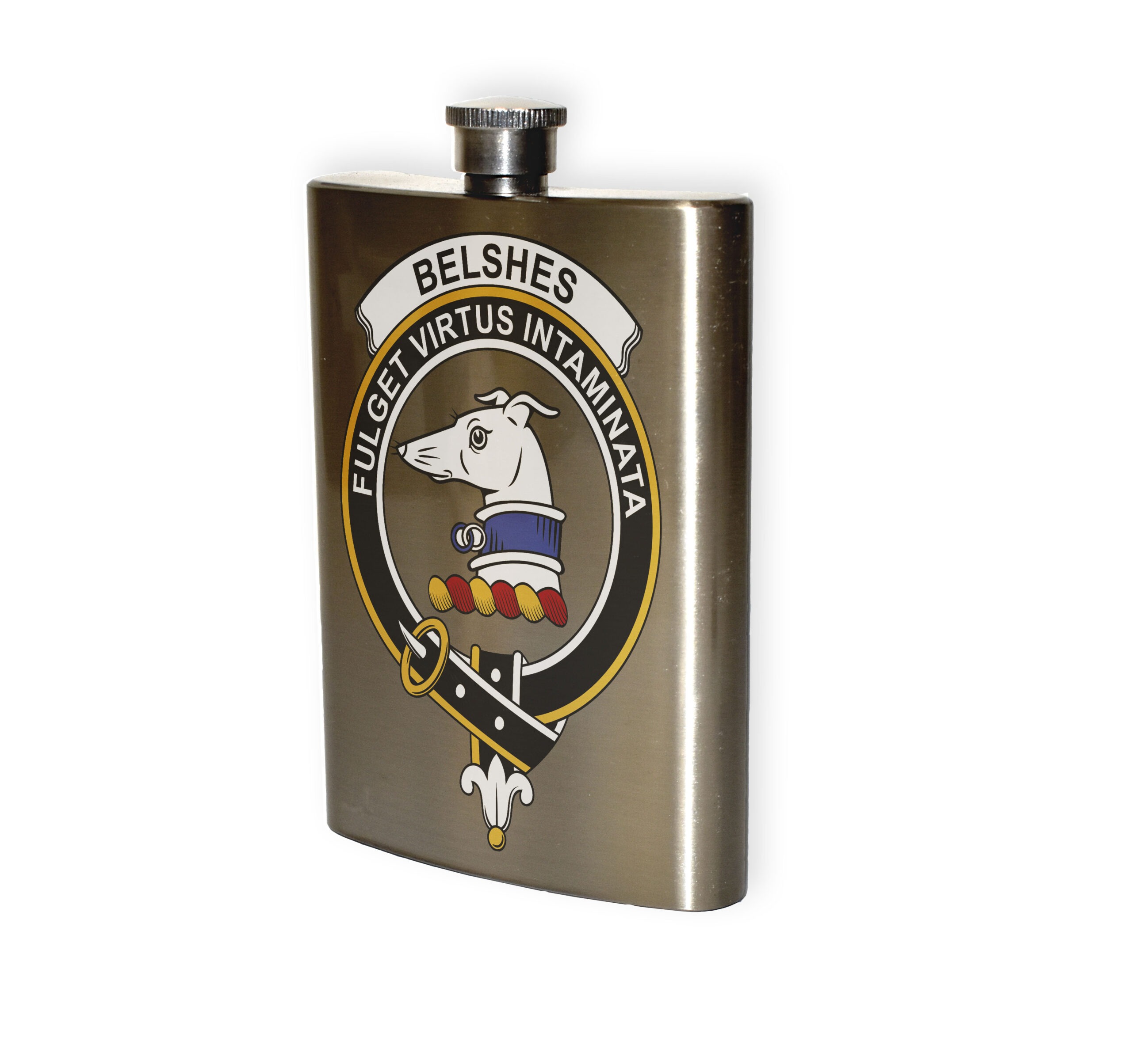 Belshes Clan Crest Stainless Steel Hip Flask – 8oz.