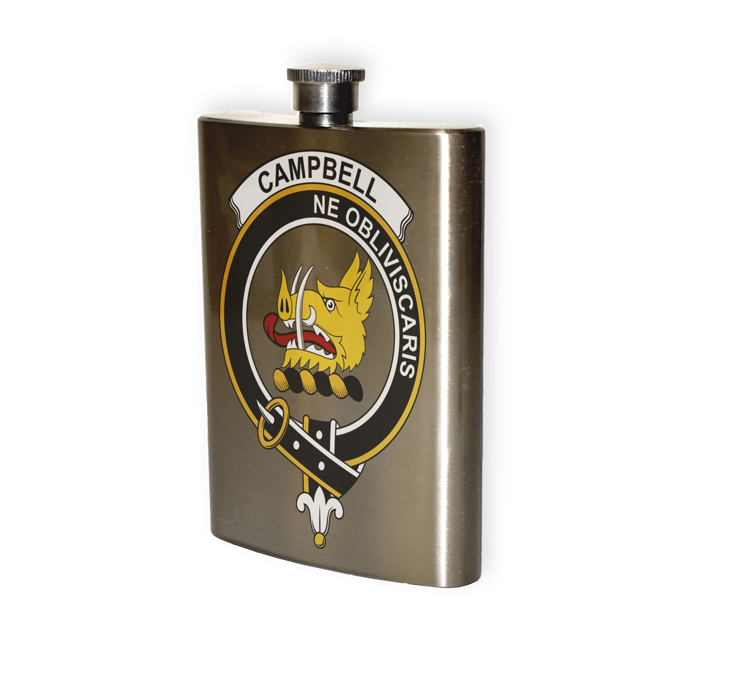 Campbell Clan Crest Stainless Steel Hip Flask – 8oz.