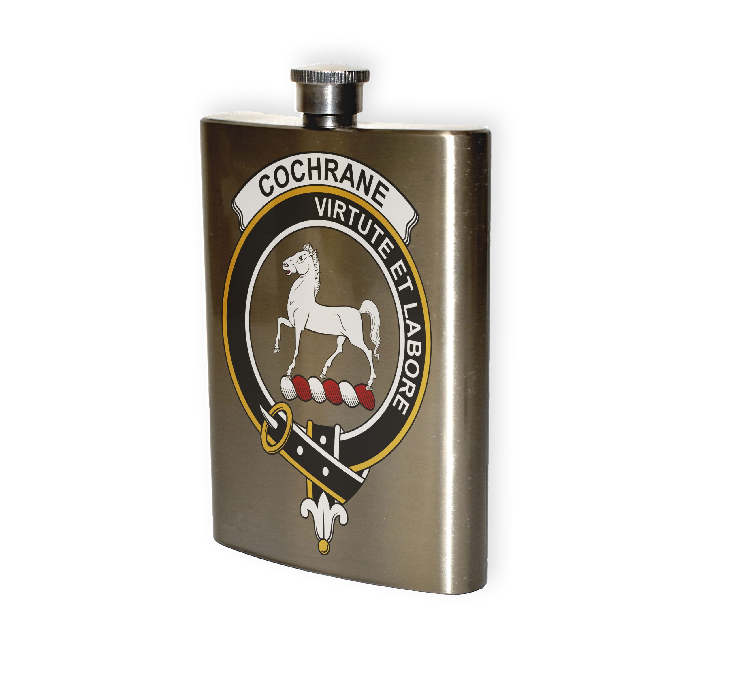 Cochrane Clan Crest Stainless Steel Hip Flask – 8oz.