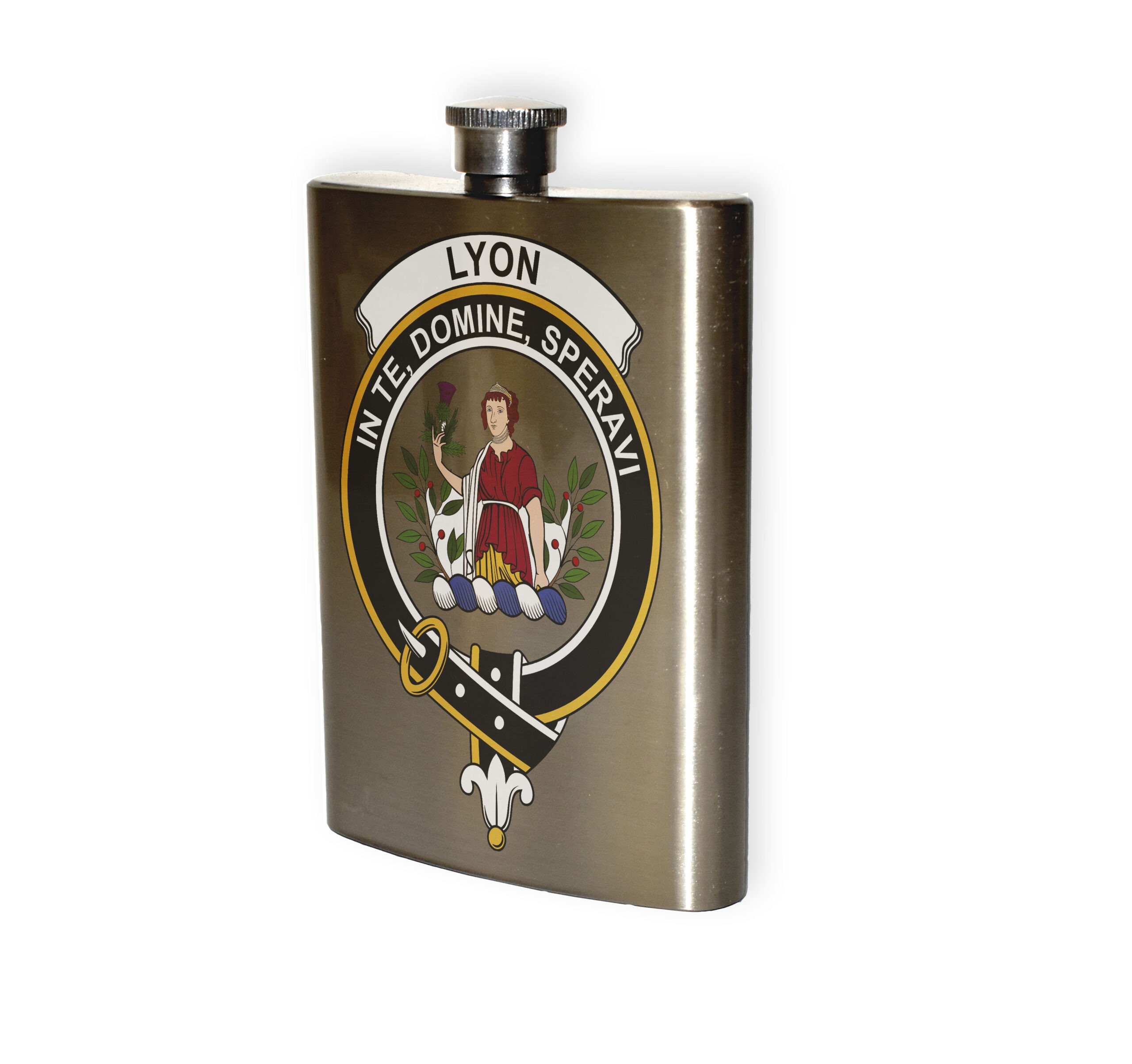 Lyon Clan Crest Stainless Steel Hip Flask – 8oz.