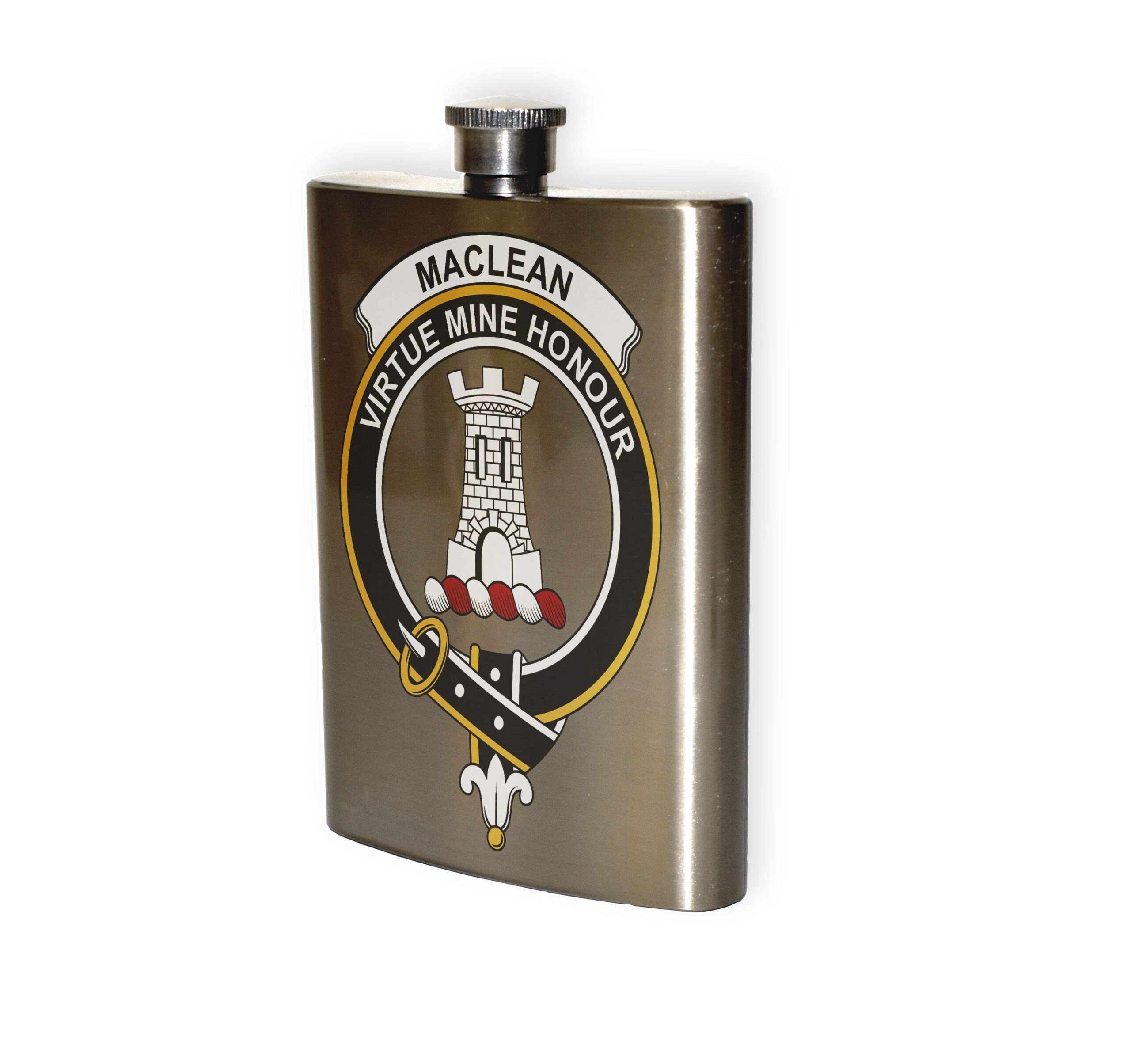 MacLean Clan Crest Stainless Steel Hip Flask – 8oz.