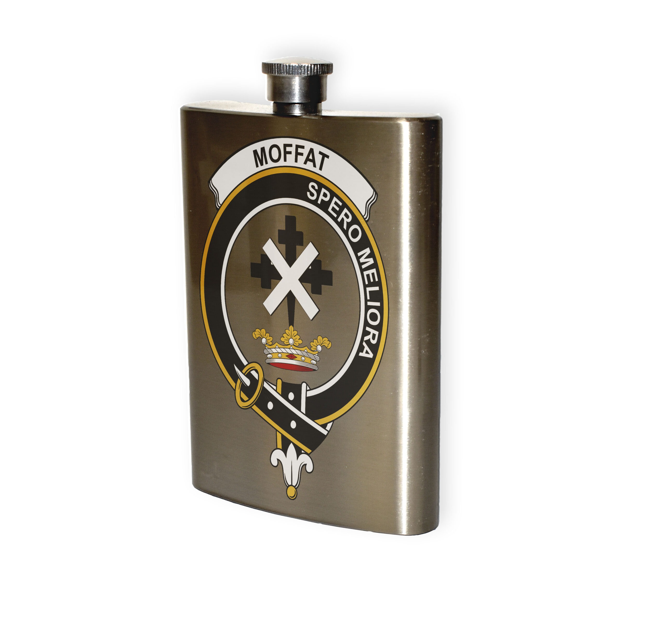 Moffat Clan Crest Stainless Steel Hip Flask – 8oz.