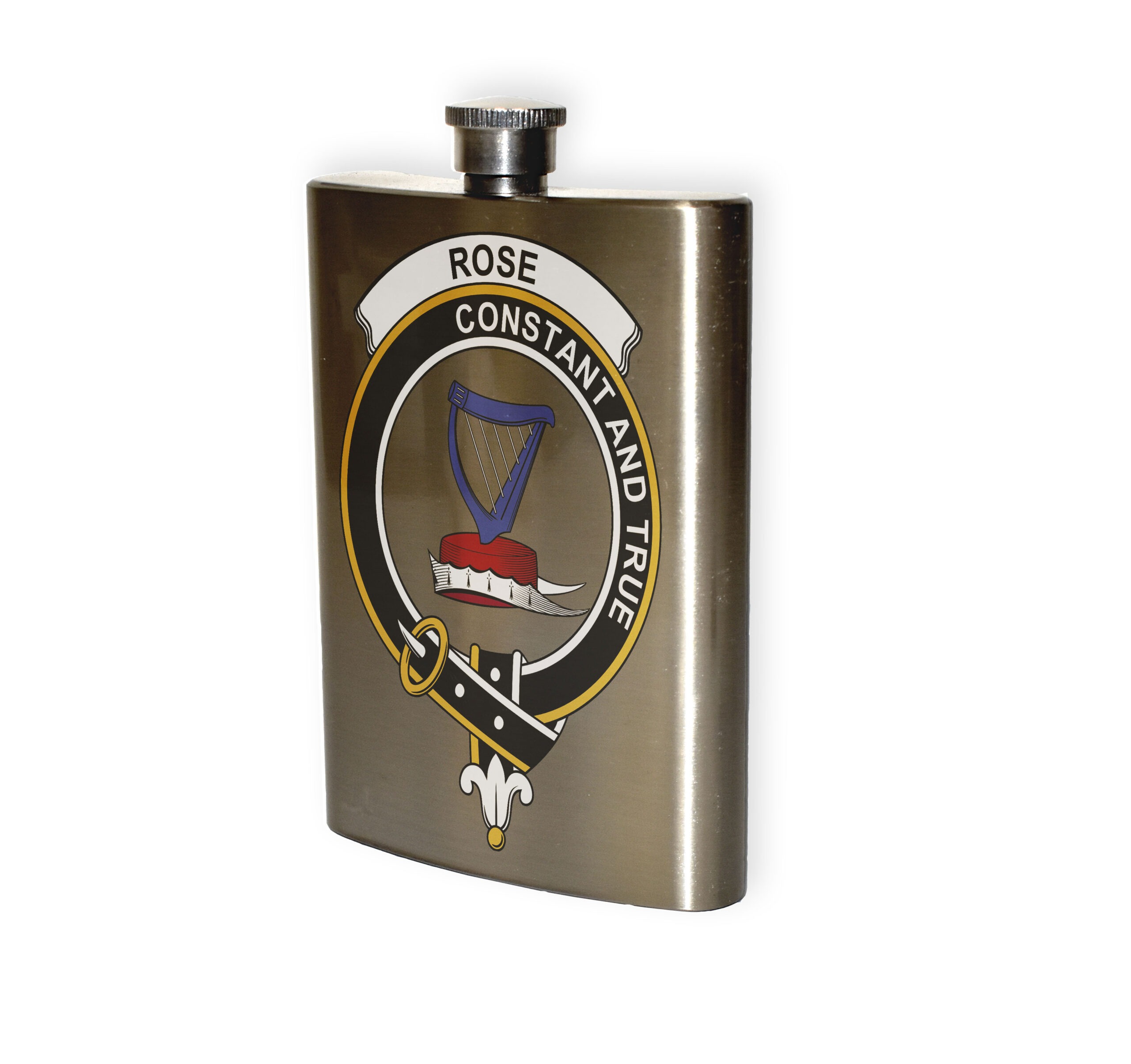 Rose Clan Crest Stainless Steel Hip Flask – 8oz.